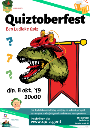 Theaterzaal LedebergHet traditionele Quizfabriek-recept: uitdagende breinbrekers afgewisseld met ludieke verrassingen. Breng je tablet of smartphone mee en doe mee aan deze amusante interactieve quiz. Kennis staat centraal, maar reken ook op sfeer, ambiance en misschien zelfs een onverwachte dansmove.