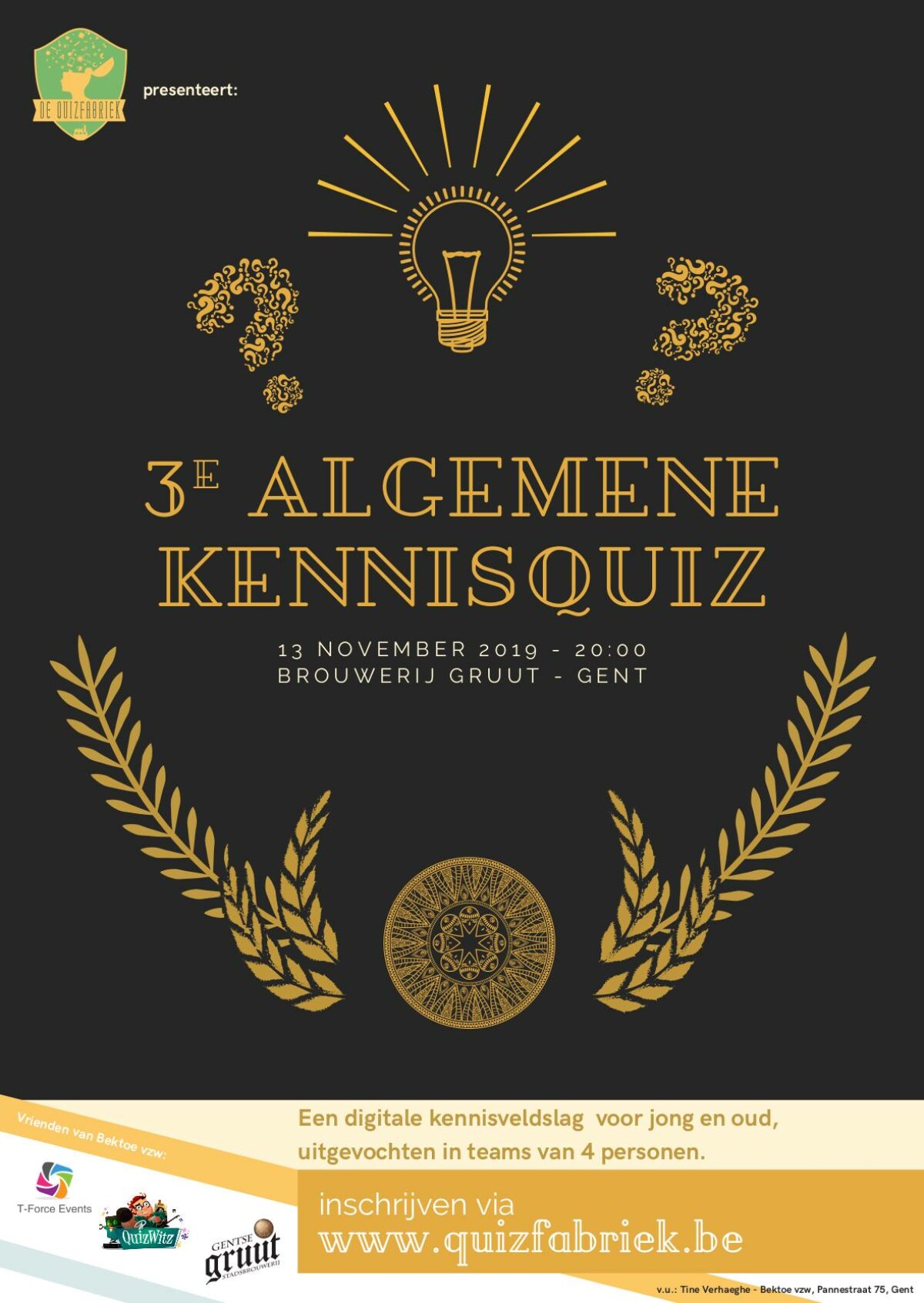 Brouwerij GruutEen quizreeks gericht op de doorwinterde quizzer: iets pittigere vragen over de meest uiteenlopende onderwerpen aangevuld met spannende tussenrondes. We mikken op C-niveau en er zijn géén waaghalzenduels/doe-opdrachten. Traditioneel quizzen in een nieuw (digitaal) jasje; ga jij de uitdaging aan?