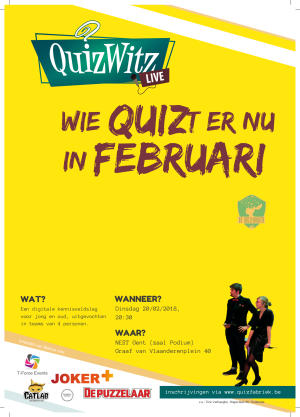 Gelukkig zijn er in februari ook heel wat leuke dingen te beleven. Denk maar aan carnaval, of voor de studenten onder ons het einde van de examenperiode. Én natuurlijk ook De Quizfabriek's nieuwste QuizWitz live editie!
