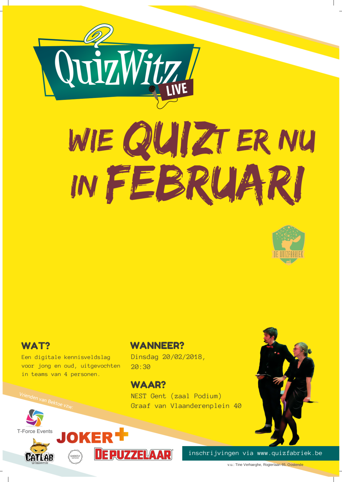 Gelukkig zijn er in februari ook heel wat leuke dingen te beleven. Denk maar aan carnaval, of voor de studenten onder ons het einde van de examenperiode. Én natuurlijk ook De Quizfabriek's nieuwste QuizWitz live editie!